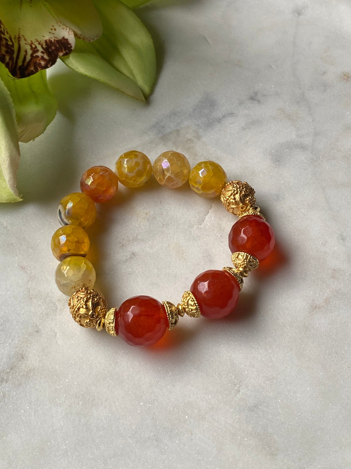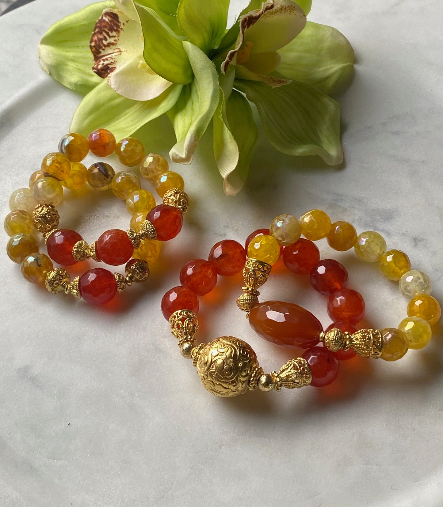 This new design of my signature Anand Collection Bracelets is part of this special, evergreen Atelier Emme collection. This beauty evokes warmth with the gorgeous faceted Carnelian focal stones highlighted by the 22K Gold Plated Milgrain and Filigree accents.